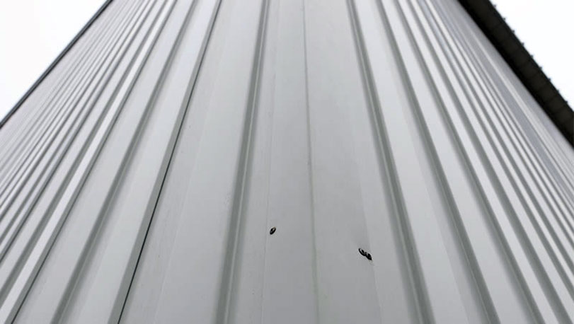 ,顏色為美深藍,牌號為TS300GD+AZ,鋁鋅重量為150克/平方米。該工程為美聯鋼構建設。