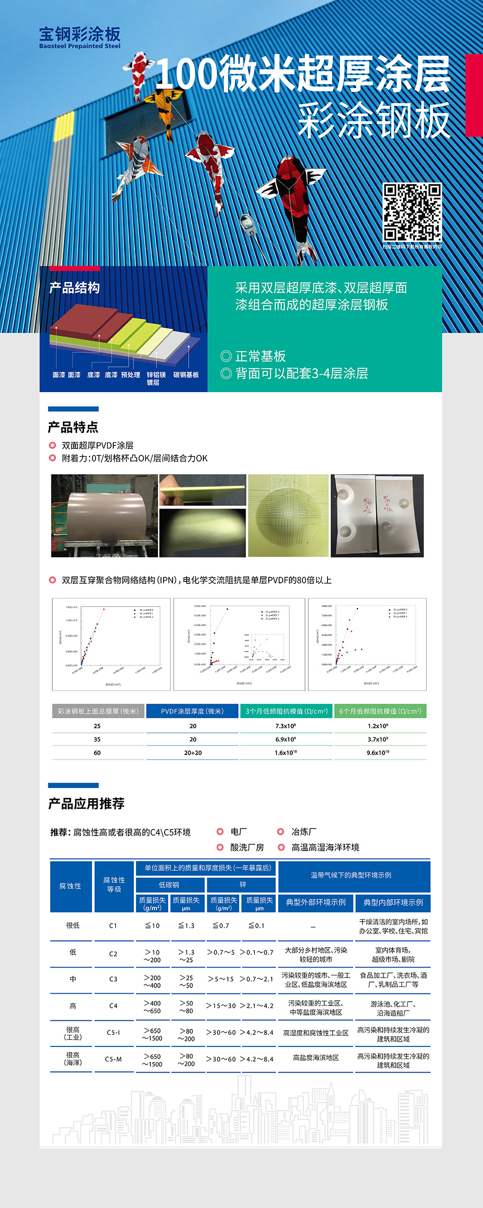 注:本網(wǎng)站數(shù)據(jù)部分來源寶鋼彩涂板企業(yè)標(biāo)準(zhǔn)BQB/440 -2014 ,寶鋼彩涂板產(chǎn)品手冊,及工程案例。